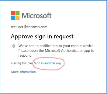 Kaksivaiheinen tunnistautuminen voidaan tehdä oletustunnistautumistavasta poiketen valitsemalla tunnistautumispyyntöikkunasta linkkiä